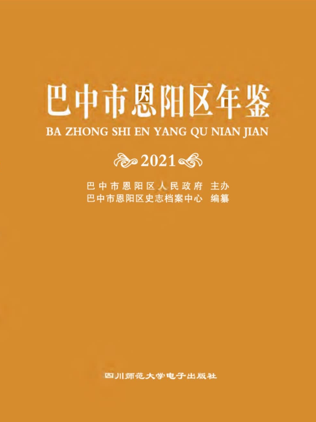 二、《巴中市恩阳区年鉴》(2021)(以下简称“本鉴”)是国内公开发行的年刊。主要记录 2020年度巴中市恩阳区的基本情况、发展变化、大事要闻、基础资料等信息。