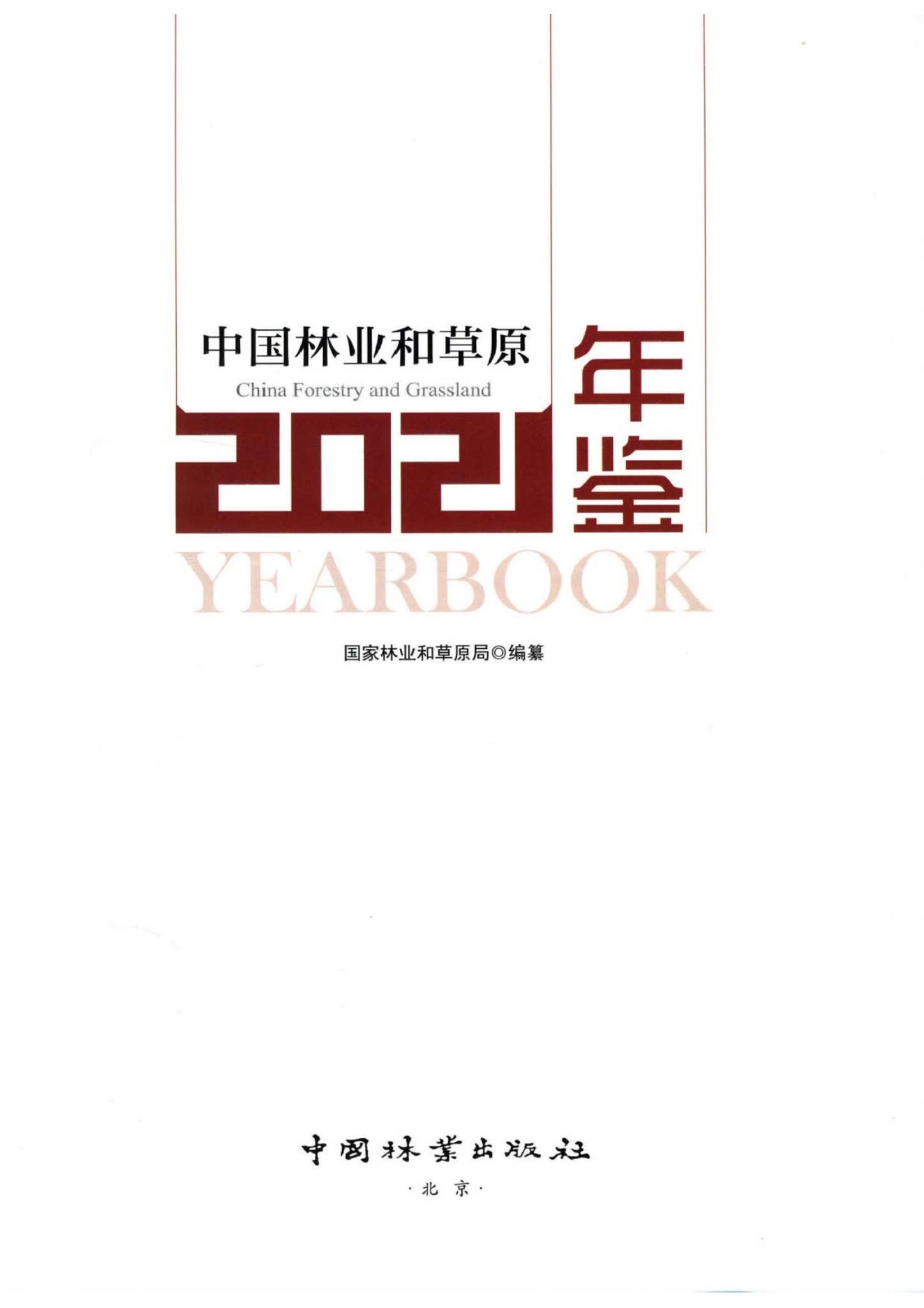 《中国林业和草原年鉴》 (原《中国林业年鉴》,自2019起更名)创刊于1986年,是一部综合反映中国林草业建设重要活动、发展水平、基本成就与经验教训的大型资料性工具书。每年出版一卷,反映上年度情况。2021卷为第三十五卷,收录限2020年的资料,宣传彩页部分收录2020年和2021年资料。